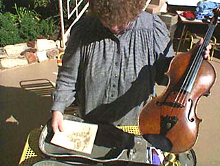 Betty Hauck is a musician who plays viola with the Apple Hill Chamber Players. A life of concert tours includes countless airport layovers and nights in hotels. Betty regards the shoulderbag she carries as her home away from home--referring to a cottage in rural New Hampshire where she returns between trips. | |