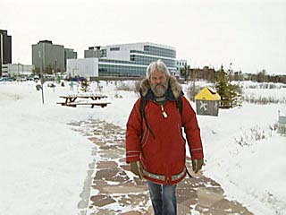 Chris O'Brien is an environmentalist who lives in town and works in an office during the week. He regularly walks to the office, even during winter when temperatures in this subarctic outpost drop below -40 degrees. Most weekends Chris treks several miles on snowshoes to a teepee that he has erected in the wilderness. | |