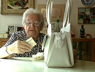 Thelma Gehry was a girl when she left Poland. Years later she married, raised two children, moved from Toronto to Los Angeles, and worked as an interior decorator. At the age of 85 she is never far from her handbag, even though excursions outside the apartment have become less frequent. She customarily packs part of a sandwich in the event of hunger, and she never travels without candy. | |