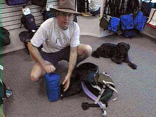 An actor who began life in London, David York confesses that he always had trouble with pockets and dislikes the extra degrees of containment and extraction that wallets entail. The fanny pack David has recently adopted was a free gift from the health club, awarded for introducing a friend during last year's membership drive. | |